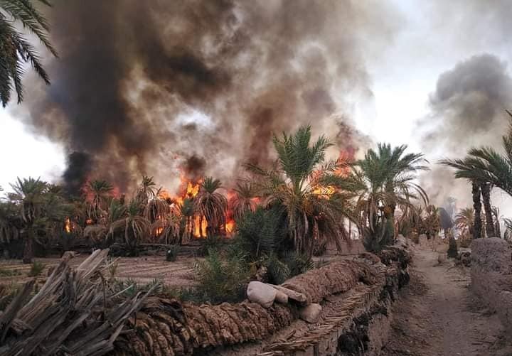 وقد واجهت فرق الإطفاء صعوبات كبيرة في السيطرة على الحريق، نتيجة الرياح القوية التي ساعدت على سرعة امتداد النيران، إلى جانب اتساع رقعة الحريق وارتفاع درجات الحرارة في المنطقة، ما زاد من صعوبة عملية الإطفاء وهدد الأراضي الزراعية والنخيل المنتشرة في الواحة.