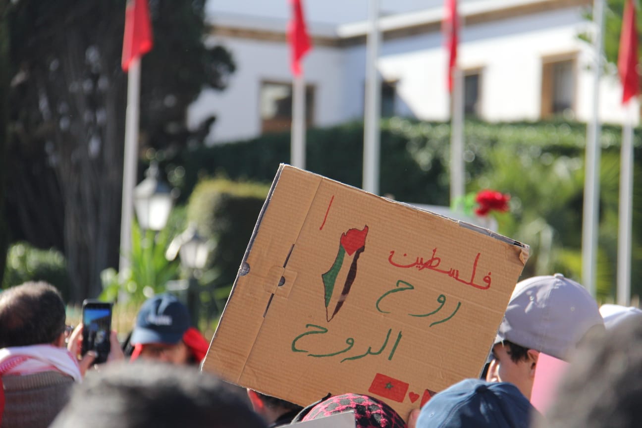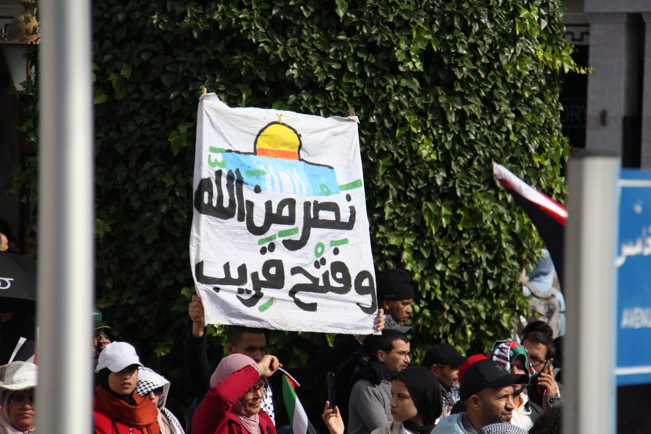 وعلى طول المسيرة الممتدة من ساحة باب الأحد إلى محطة القطار “الرباط المدينة”، مرورا بمبنى البرلمان، رفع المحتجون الأعلام الفلسطينية ورموز القضية والمقاومة، وأعربوا عن الدعم الكامل لها، إلى جانب حمل صور تعكس جانبا من الدمار الذي خلفته الآلة الوحشية لإسرائيل، وصور المجازر التي خلفت مئات الآلاف من الضحايا بين شهيد وجريح ومفقود ومشرّد، جلهم من الأطفال والنساء.
